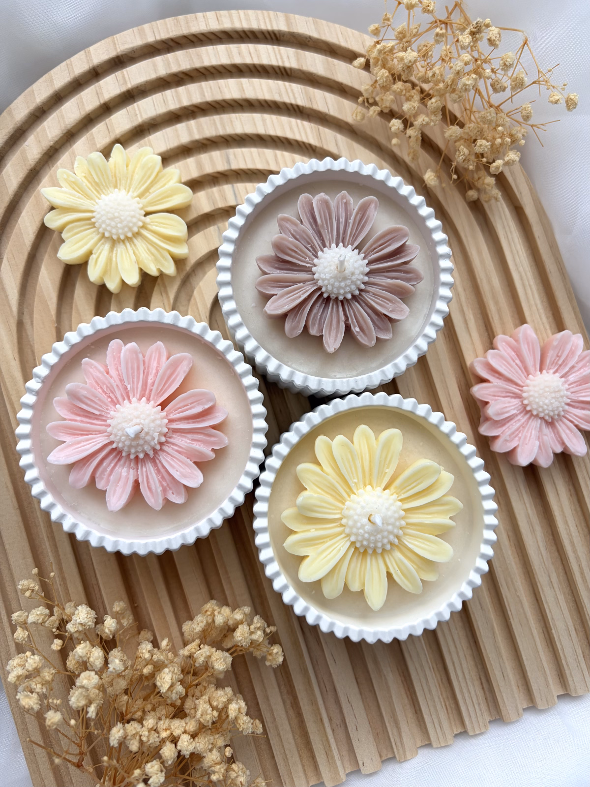 Sojova svicka Daisy v pohari z ekologickeho materialu zdobena kvetinou. Tato jarni svicka probudi vase smysly a naladi vas na prichazejici jarni naladu. Po vyhoreni svicky muzete nadobu vycistit a znovu pouzit. Muzete si vybrat ze ctyr barevnych variant. Cela jarni kolekce je vonava. Pokud byste potrebovali sojove svicky bez vune, staci do poznamky napsat bez vune.