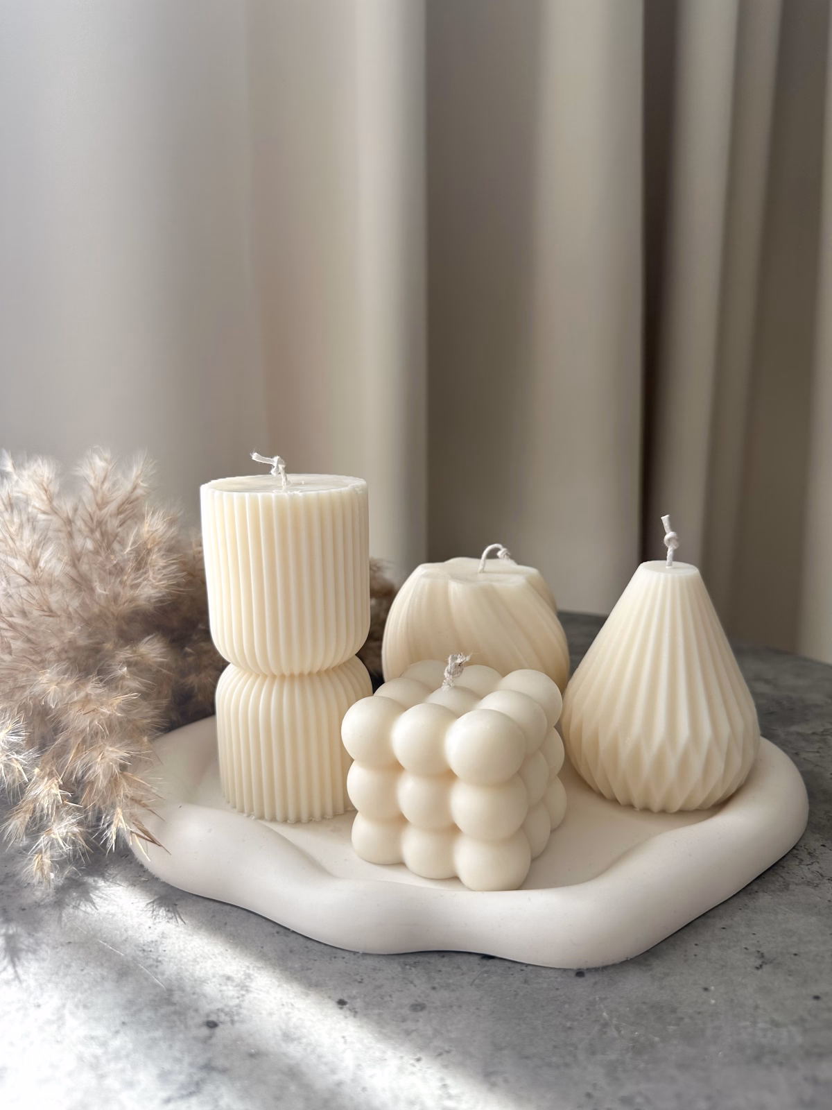 V setu se nachazi podtacek z ekologickeho materialu, sojova svicka Strukturovana koule M, Origami, Bubble a sojova svicka Remi. Set je za zvyhodnenu cenu oproti nakupu produktu samostatne.
